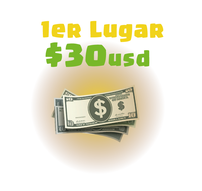 1.er lugar: $30 USD I 2.º lugar: $11 USD I 3.er lugar: $6 USD